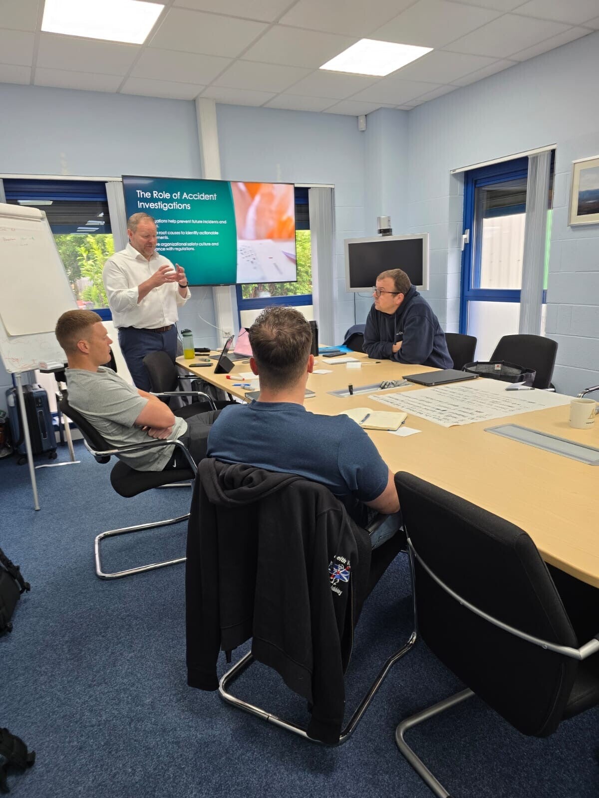 A realistic simulation exercise allowed participants to apply their knowledge in a controlled setting. Teams worked through a staged wind turbine maintenance incident, identifying root causes, interviewing "witnesses," and producing a full incident report complete with corrective actions.